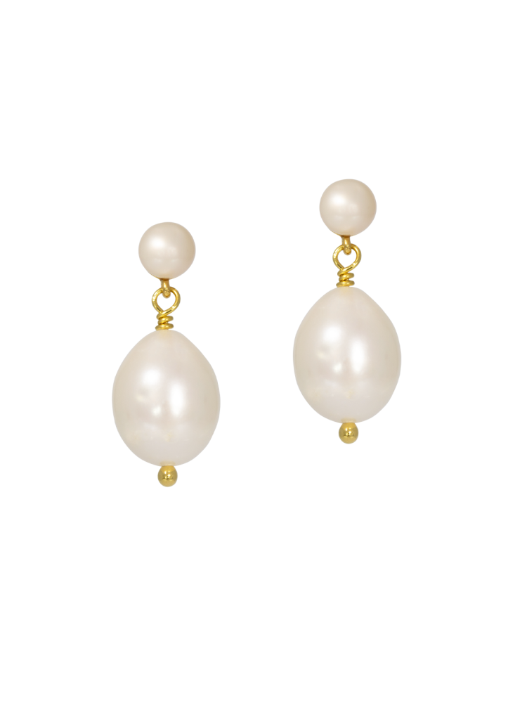 Een prachtig ontwerp voor parelliefhebbers: deze oorbellen hebben kleine ronde zoetwaterparelstuds in combinatie met grotere ovale zoetwaterparelhangers.
