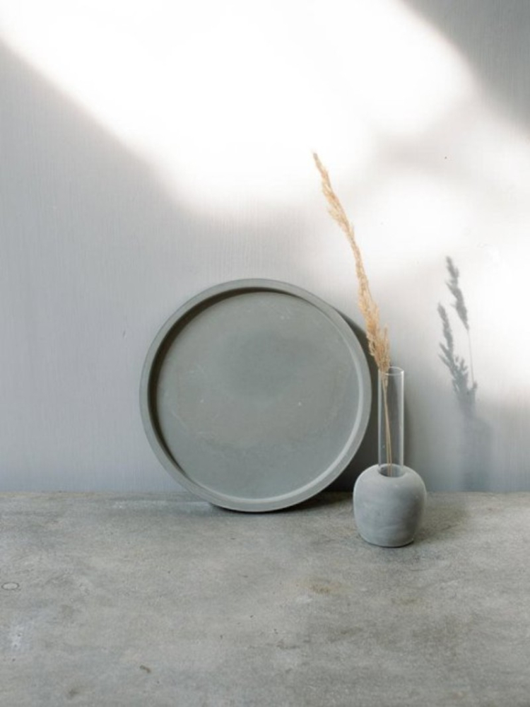 Een serene betonnen standaard voor gekoesterde herinneringen, ontworpen met bruidsgraad om elegant kleine bloem- en kaarsarrangementen te tonen. Gemaakt van grijs beton (20 x 20 cm) met een zachte matte afwerking en een laag profiel, perfect voor vazen, kaarsen en kleine aandenken.