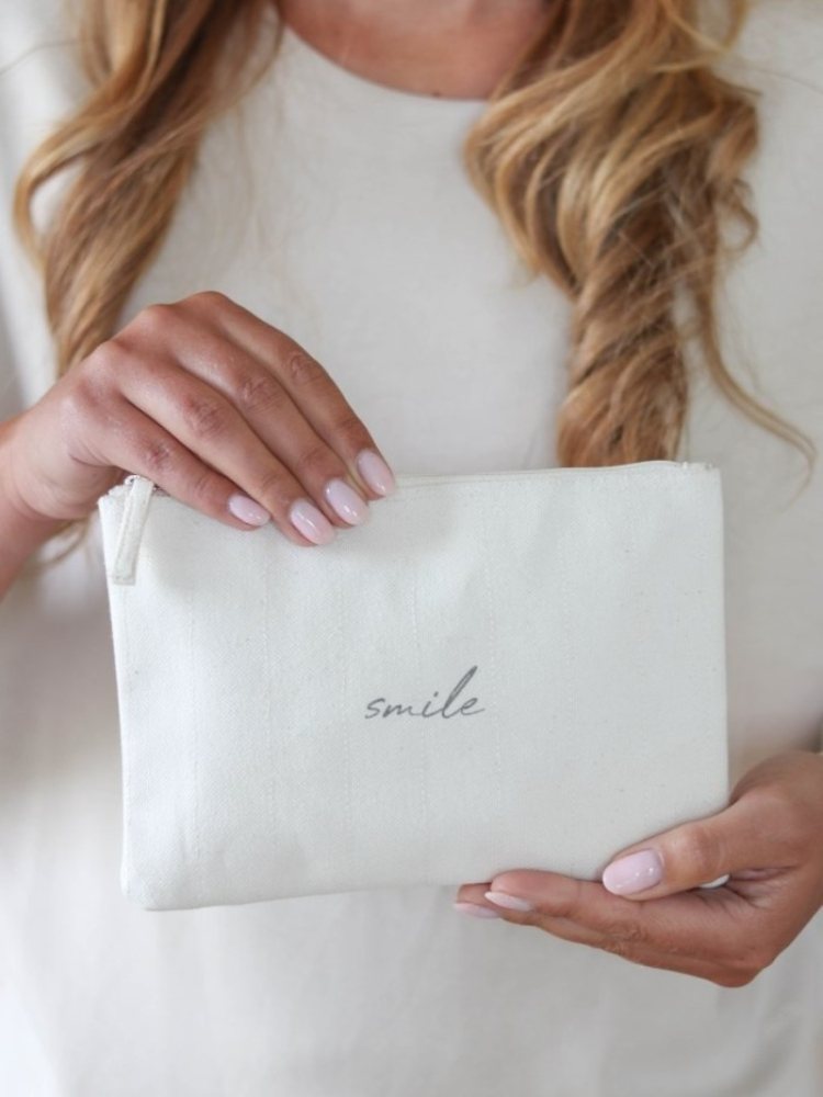 Een stijlvol make-uptasje om te koesteren. Leeff Marit - Lach is handgemaakt uit 100% biologisch katoen en heeft een geplastificeerde binnenkant. Ideaal om make-up, juwelen, sleutels of kleine spulletjes netjes te bewaren. Een bijzonder geschenk, heerlijk om te krijgen én fijn om te geven.
