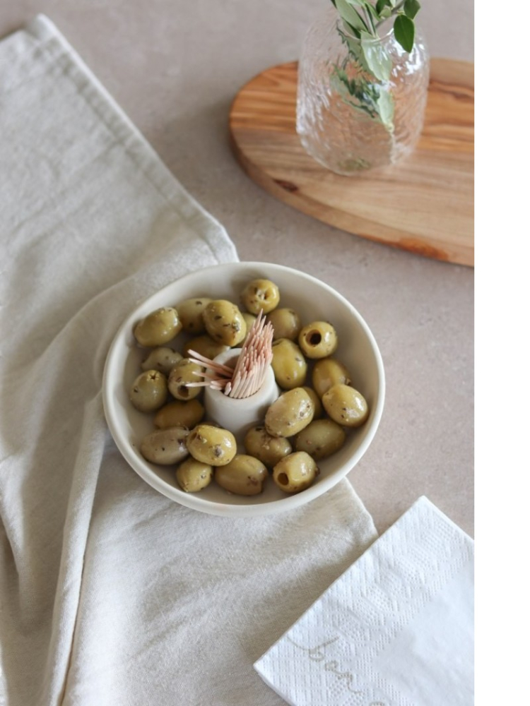 Een elegant keramieken olijfbakje met handige houder in het midden voor prikkers. Ideaal om olijven en kleine hapjes stijlvol te serveren tijdens een gezellige borrel. Een fijn cadeau-idee dat uitnodigt om te delen, te proeven en te genieten van eenvoudige momenten samen.