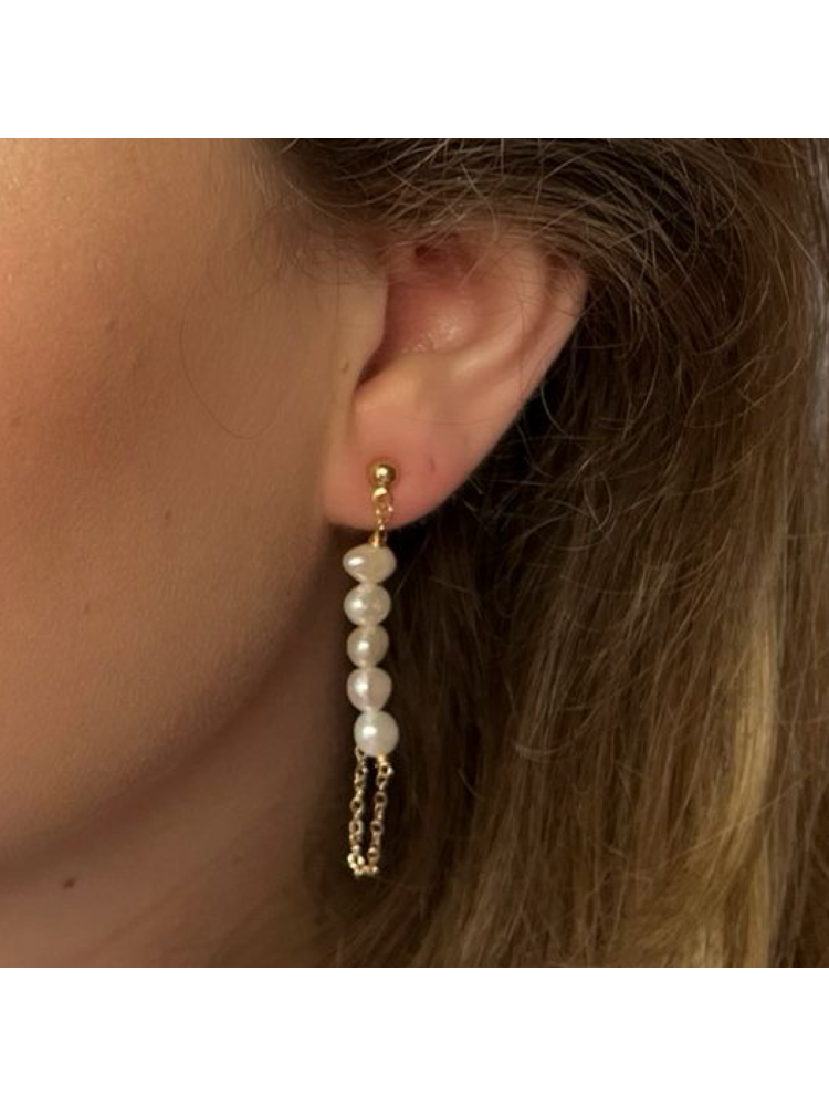 | Verzorgingsinstructies | Make a statement with our gold-plated brass earrings, finished with freshwater pearls. These long earrings are bold yet elegant, perfect for adding a unique and modern touch to your look. Also available in silver. |