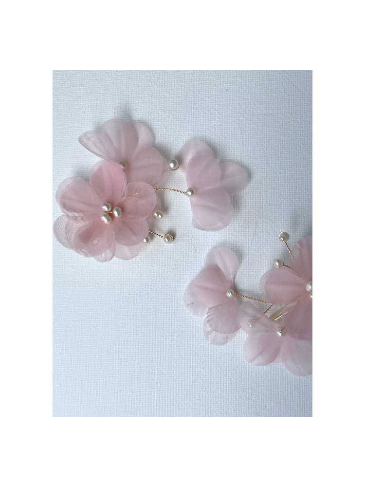 Gouden haarclips met stoffen bloemen en zoetwaterparels. Een elegante en romantische toevoeging aan je bruidskapsel of voor bruidsmeisjes.